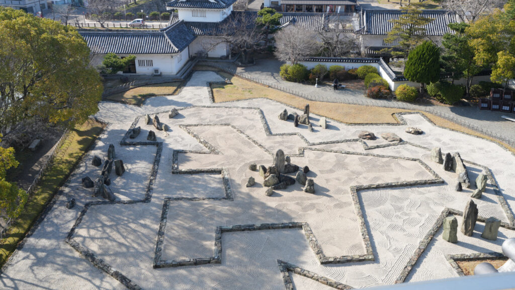 確かに他では見られない独特な庭園です。この庭園は敵を攻めるためではなく、守る陣形として、平和への願いと城跡を保存し後世に伝える想いが込められているということです。理念には大いに感銘を受けます、素晴らしい。