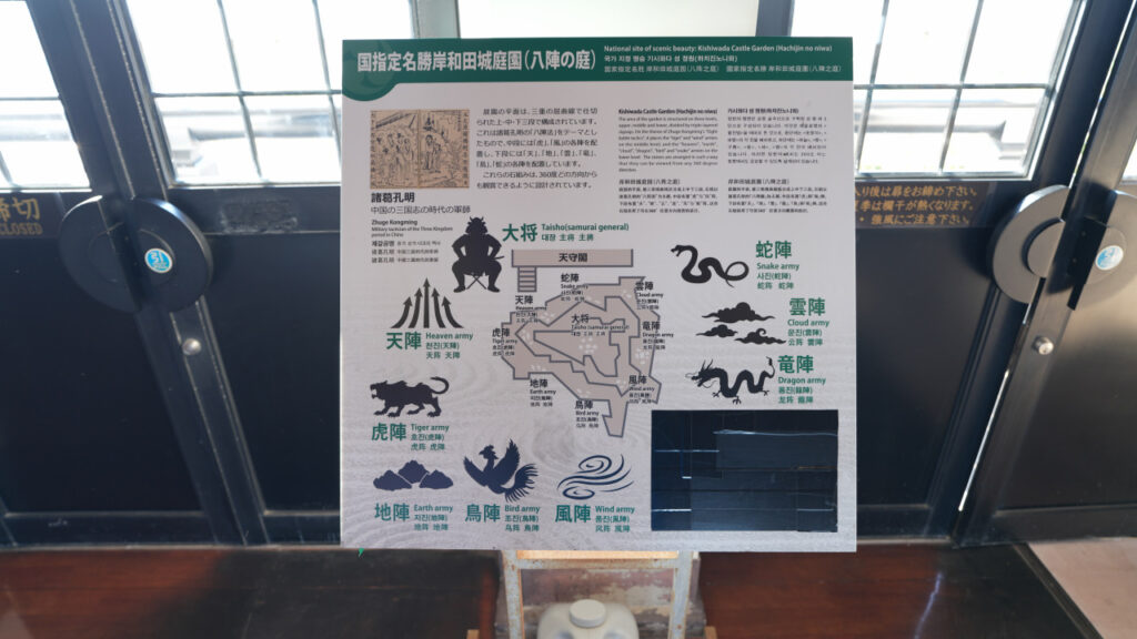 天守の最上階には八陣の庭の説明板もあります。