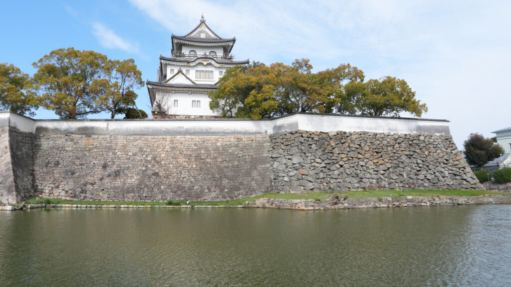 岸和田城は、正確な築城時期は不明ですが、南北朝時代に岸和田氏が築いたのが始まりと考えられています。戦国時代には、豊臣秀吉家臣の小出秀政が大改修を行い、さらには江戸時代の松平康重は総構えや城下町を整備したとされています。1640年(寛永17年)、岡部宣勝が入封し、城を完成させたと言われています。その後、岡部氏が13代続いて明治維新を迎えています。