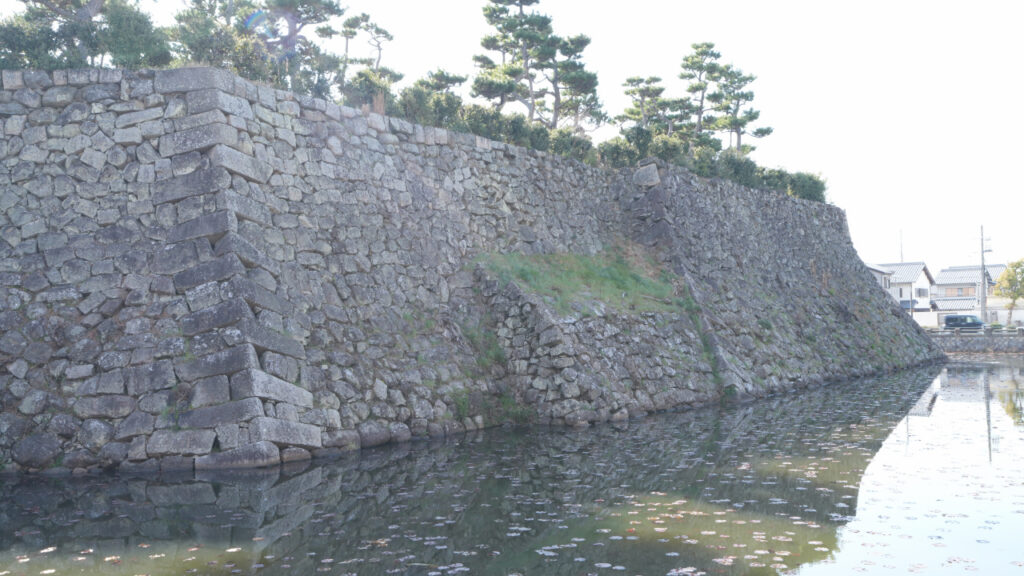 こちらは同じ面の石垣ですが、さらに二の丸寄りになります。犬走りもはっきり見てとれます。