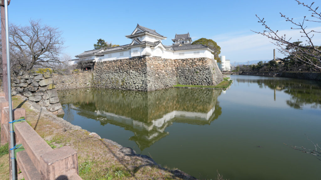 現在は、本丸と二の丸の石垣、それらを取り巻く水堀が遺構として残されています。天守、櫓門、多聞櫓、隅櫓は全て昭和になってから復興されたものです。