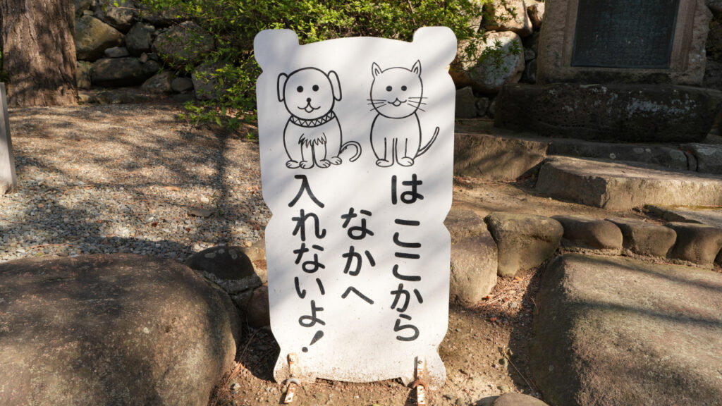 門に入ると味のある犬猫の絵がお出迎え。ペットは禁止となっているようです。