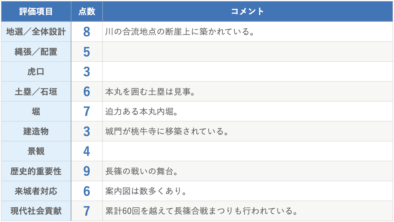 本丸の土塁は一見の価値がある迫力です。武田軍と織田・徳川連合軍が激突したあの有名な長篠の戦いの舞台となった場所です。戦国の合戦を身近に感じることができる城跡です。