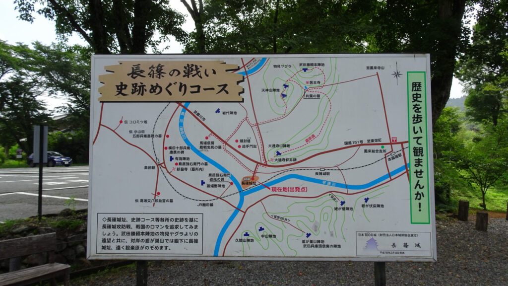 こちらは長篠城と長篠城を取り囲む砦を含めて巡るコースの案内図です。全部回ってみるのも面白そうですね。大変でしょうけど・・。