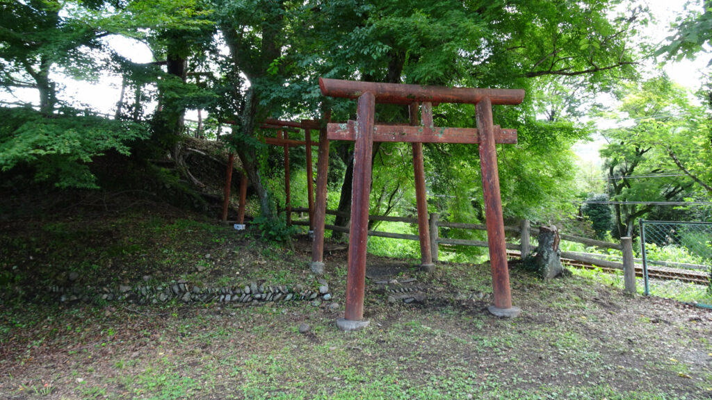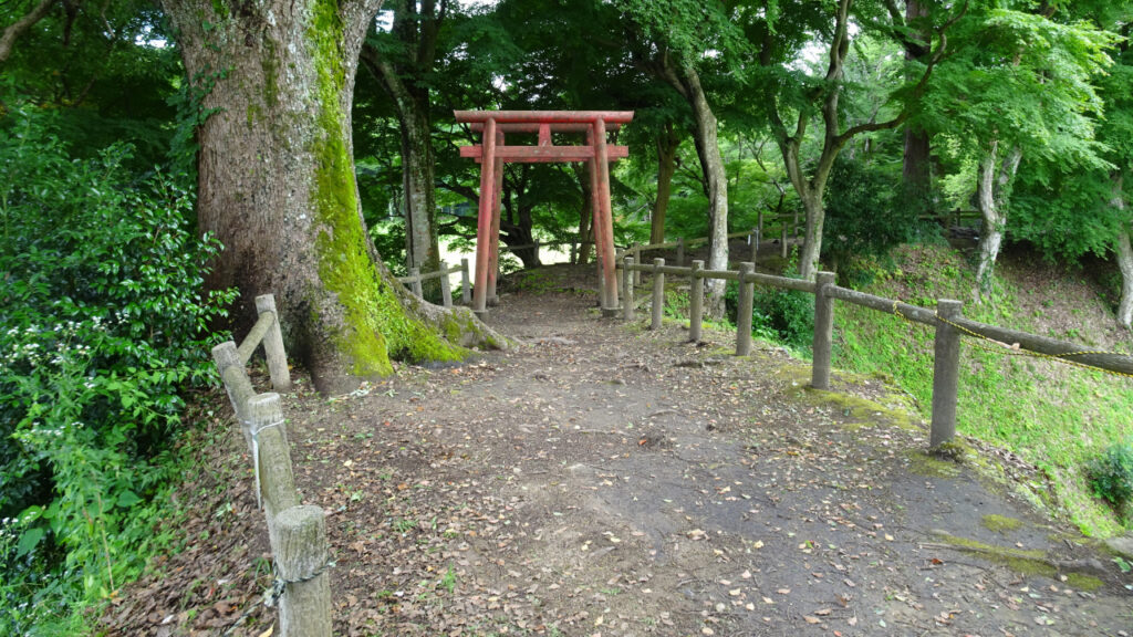 本丸北側の土塁には鳥居がありました。以前は城内にお稲荷様を祀っていたようです。その名残と思われます。