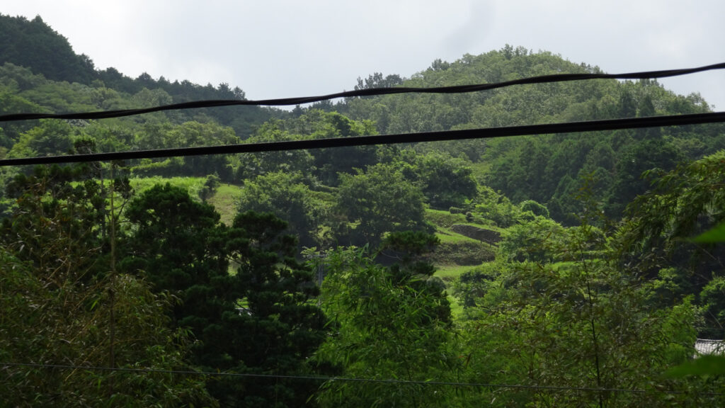 望遠で撮ってみました。これが本当に鳶ケ巣山で合っているのか自信がないですが、砦っぽい感じはします。
