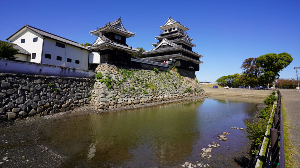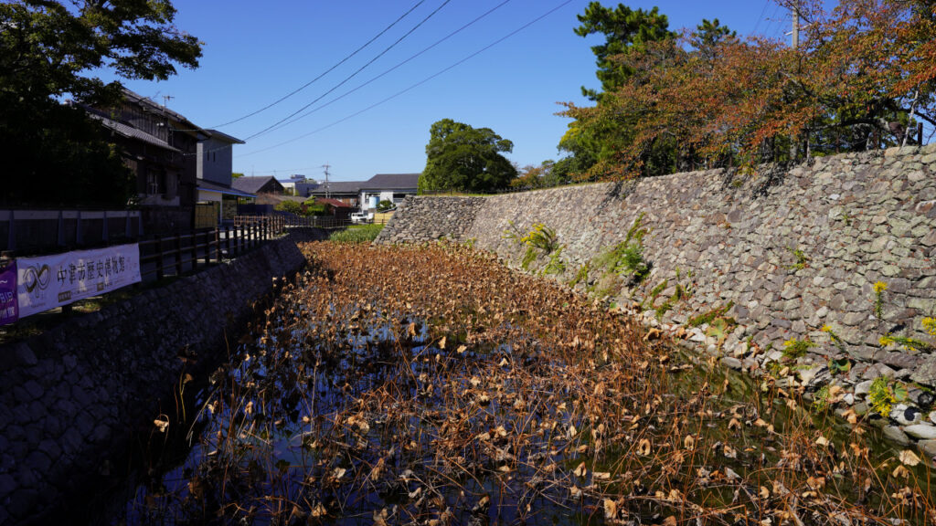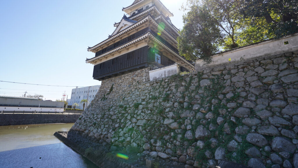 中津城に残る石垣は、近世城郭の石垣としては九州最古のものであるようです。現在は本丸の石垣の一部が現存しています。本丸南の堀と石垣は復元されています。また、本丸上段には模擬天守と二重櫓が建てられています。模擬天守は奥平家歴史資料館として一般公開されています。