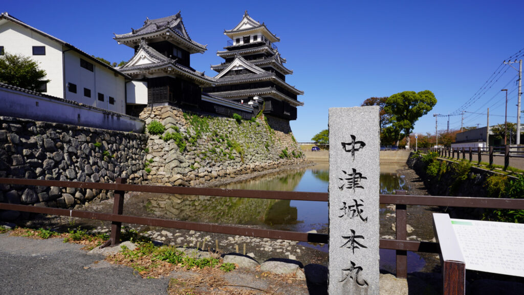 1588年(天正16年)、黒田孝高(官兵衛)が豊臣秀吉から豊前国を与えられて、領地の中心に中津城の築城を開始しています。1600年(慶長5年)、関ヶ原の戦いの戦功により、黒田氏が筑前に移り、細川忠興が豊前・豊後に入国し、中津城を修築します。細川氏転封後は小笠原氏、奥平氏が入封し、幕末まで続きます。