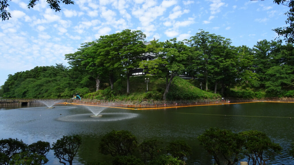北堀は本城堀を挟んで本丸の北にある北の丸の北側の堀です。ちょうど蓮の季節で、「上越蓮まつり」をやっていて、堀が蓮でいっぱいでした。