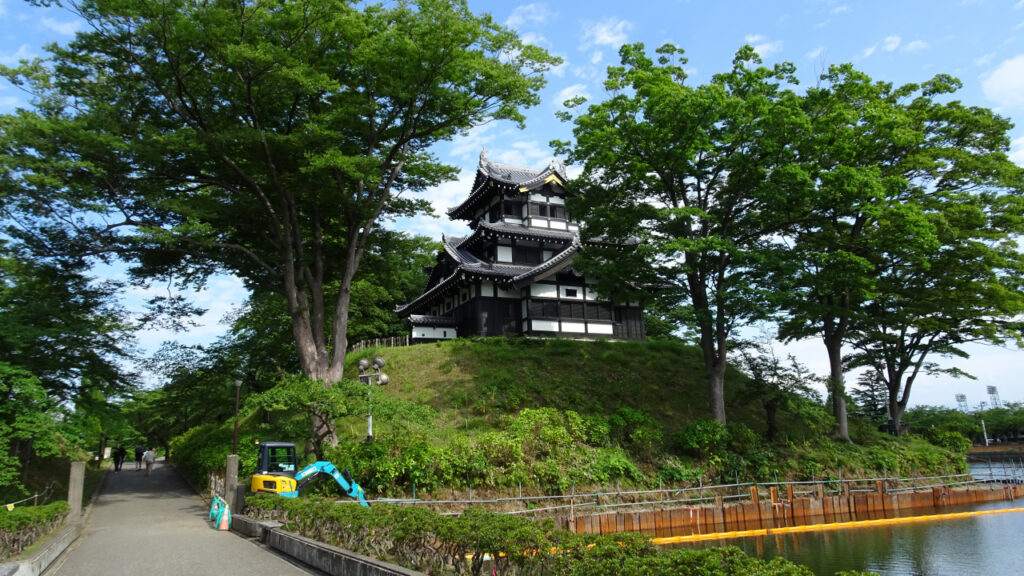 やはり櫓のような建造物があると、より城跡らしくなっていいですね!高田城のシンボルのようになっています。1993年に、資料を元に復元されています。