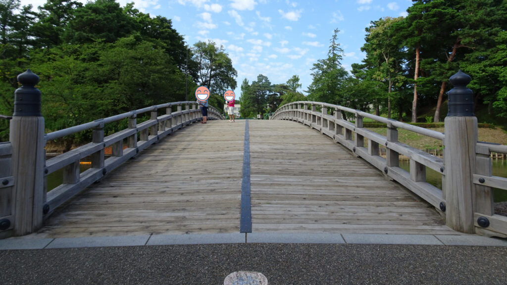 二の丸と本丸の間にかかっている橋が極楽橋です。本丸の南側にかかっています。発掘調査の資料を元に2002年に再建されています。