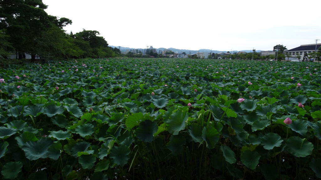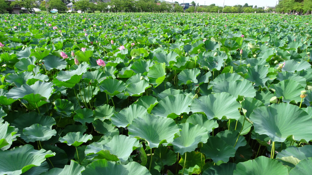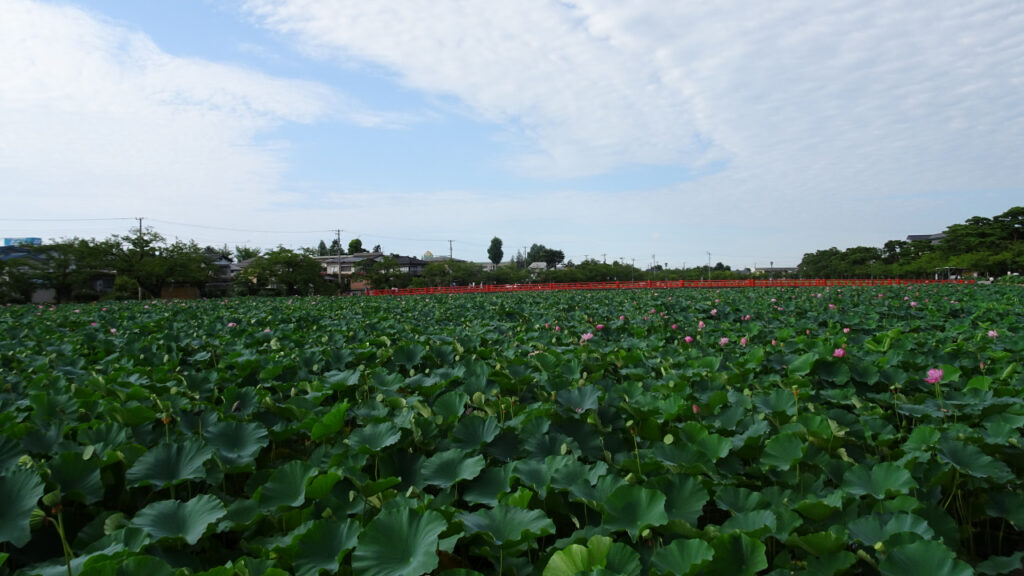 いや〜、ほんとにすごい蓮の量です。堀いっぱいに広がっている景色は壮観ですね。