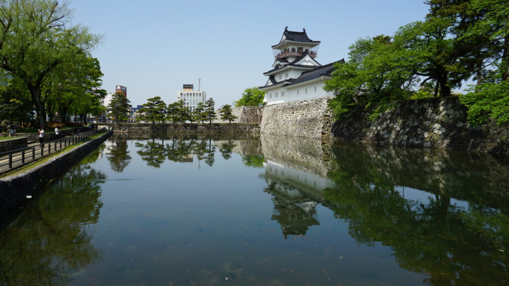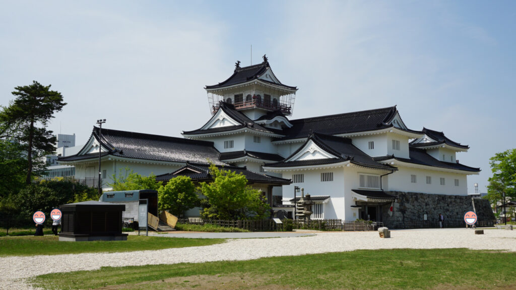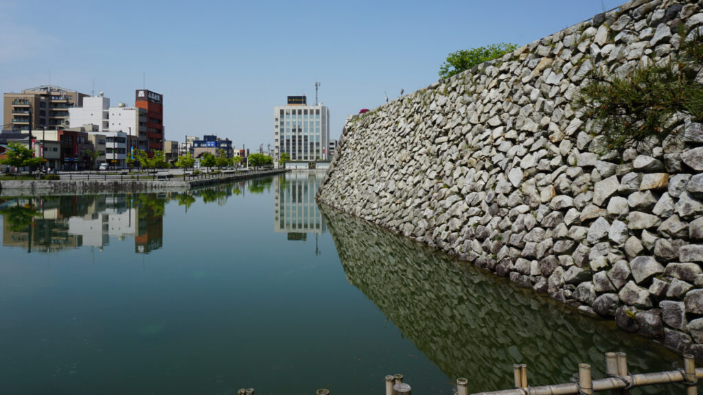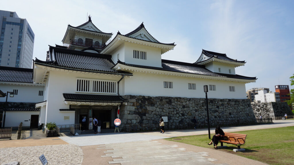 富山城の天守は史実に基づかない模擬天守です。鉄門枡形の石垣の上に建てられたコンクリート造りの3重4階の天守で、彦根城や犬山城を参考に1954年(昭和29年)に建造されています。