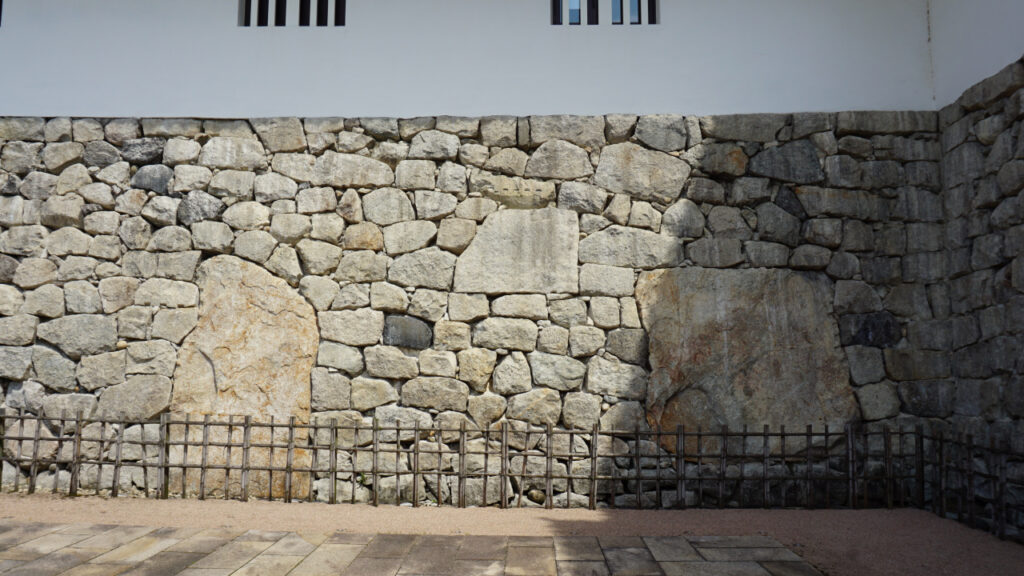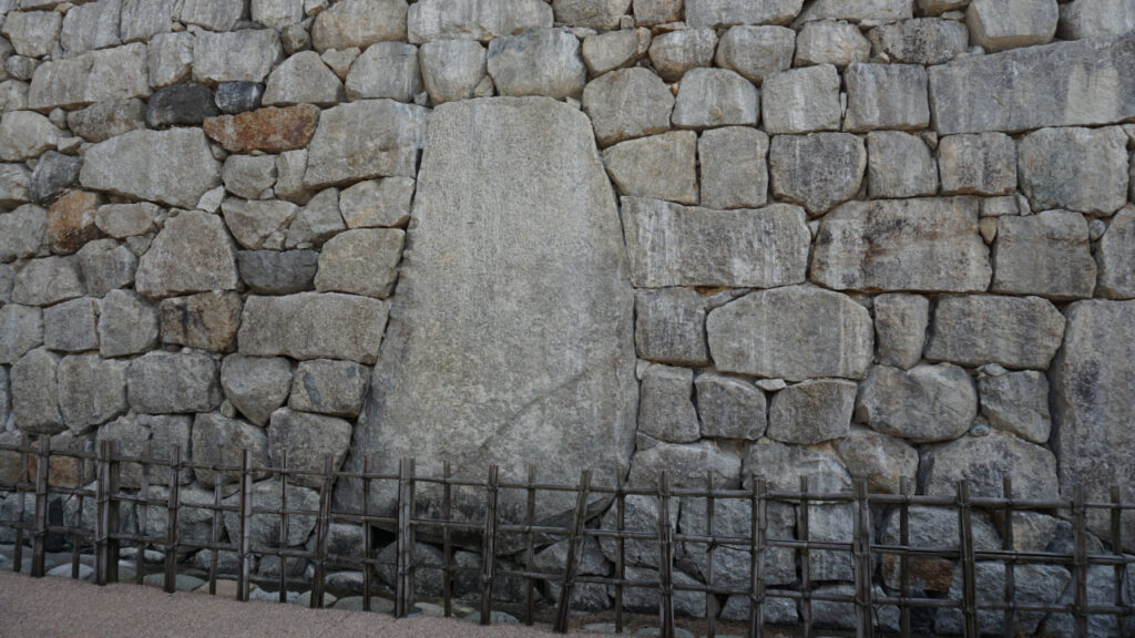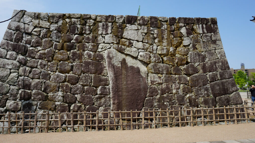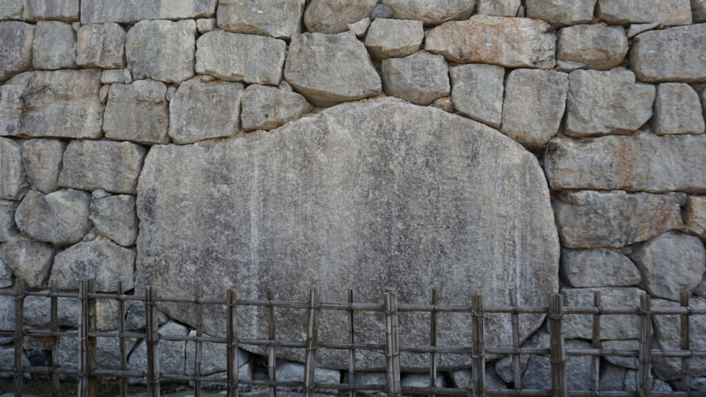 尚、こちらの鏡石は1つ前の東面の鏡石の天地を逆にしたものらしく、つまり同じ石を使っているということらしいです。確かに逆さにすると同じ形ですね。これも面白いですね、他の城では見たことがありません。